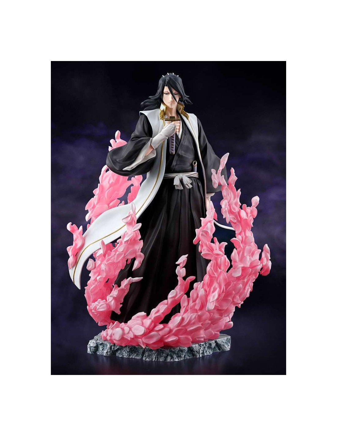 Détails minutieux : Le modèle est soigneusement sculpté pour reproduire fidèlement l'apparence et les traits distinctifs de Byakuya, du zanpakuto Senbonzakura aux plis de son haori.