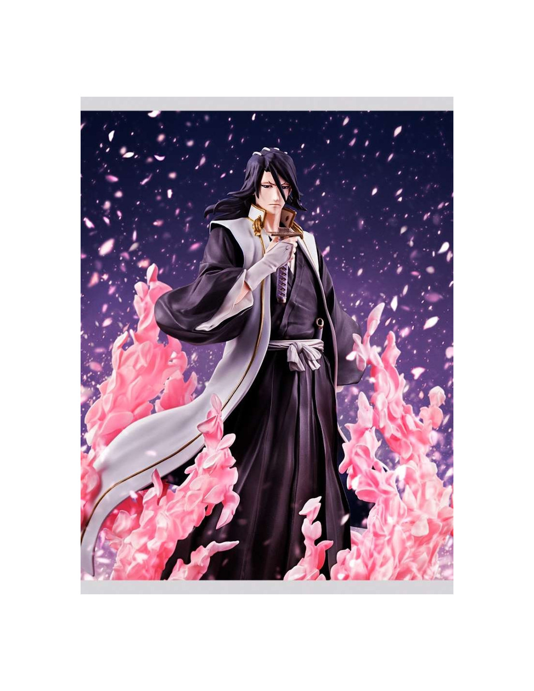 À propos du personnage : Byakuya Kuchiki est le capitaine de la 6ème Division du Gotei 13 et l'un des personnages les plus populaires de Bleach. Reconnu pour sa noblesse et sa force, il est le maître de l'épée Zanpakuto Senbonzakura, capable de se disperser en milliers de minuscules pétales de lame. Cette figurine rend un hommage parfait à son allure stoïque et sa puissance redoutable.