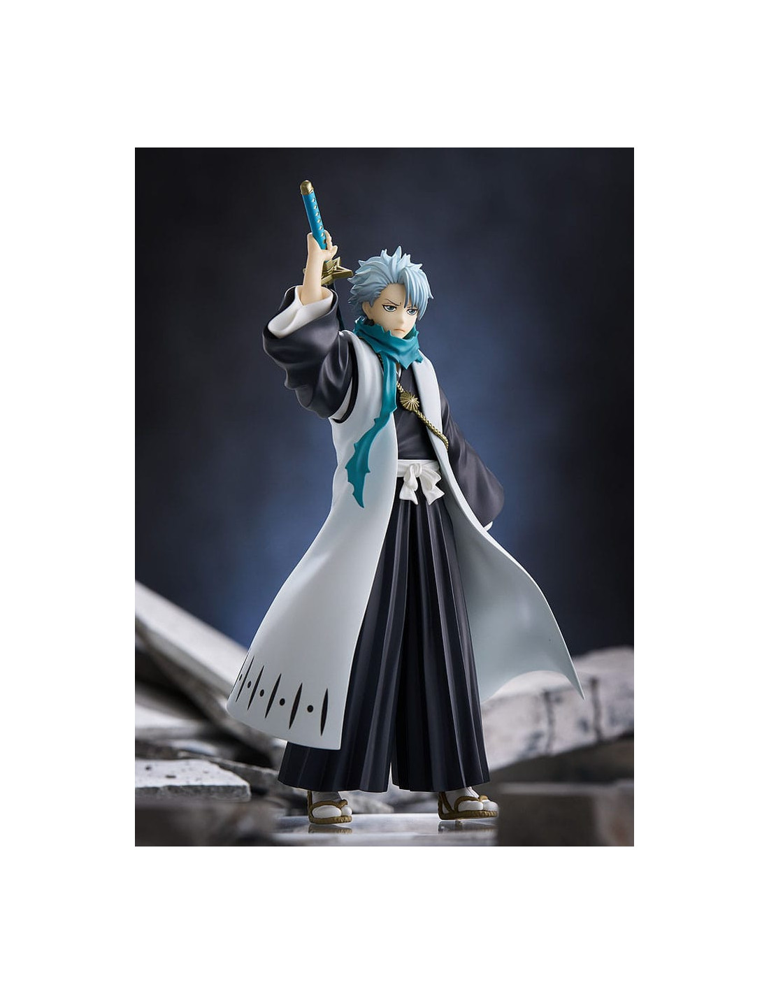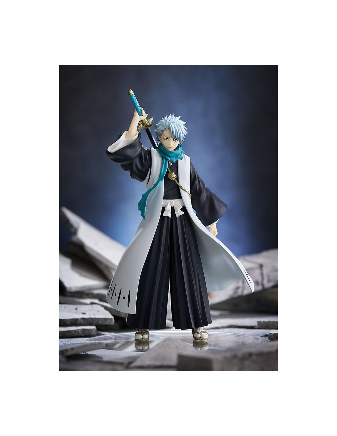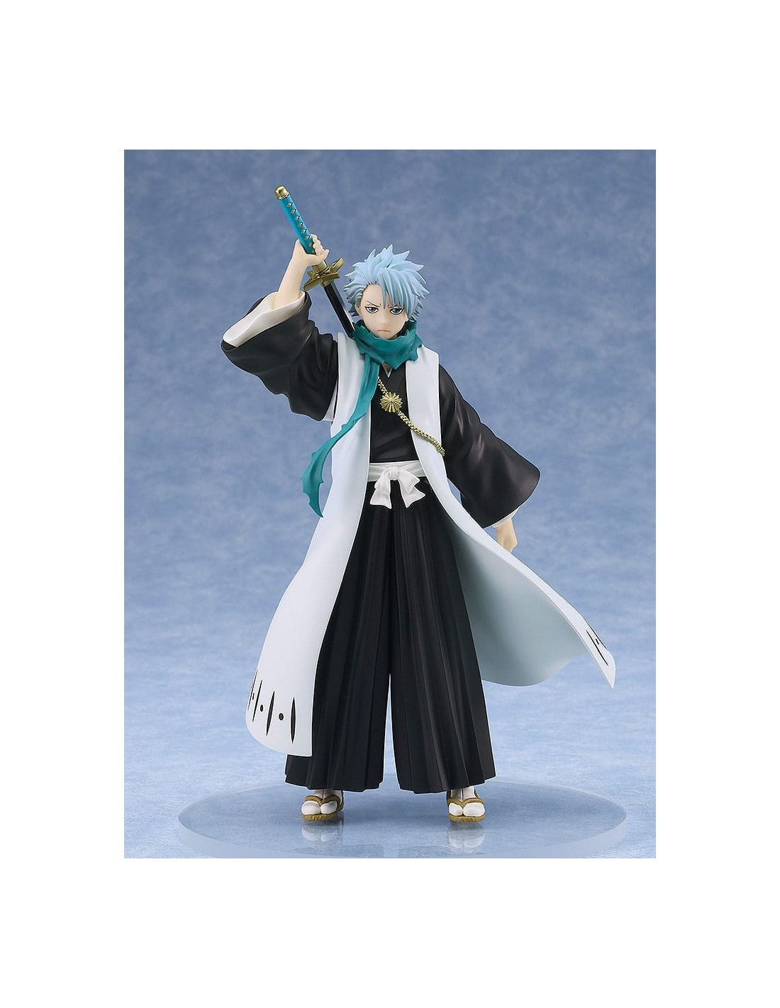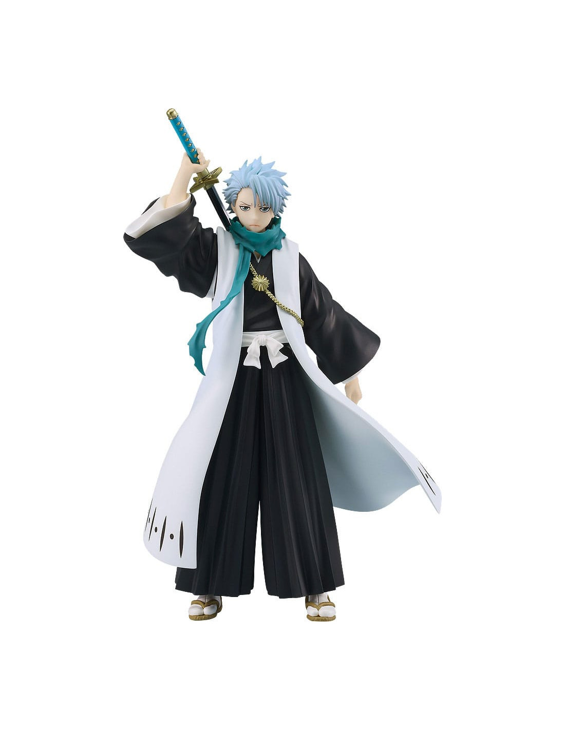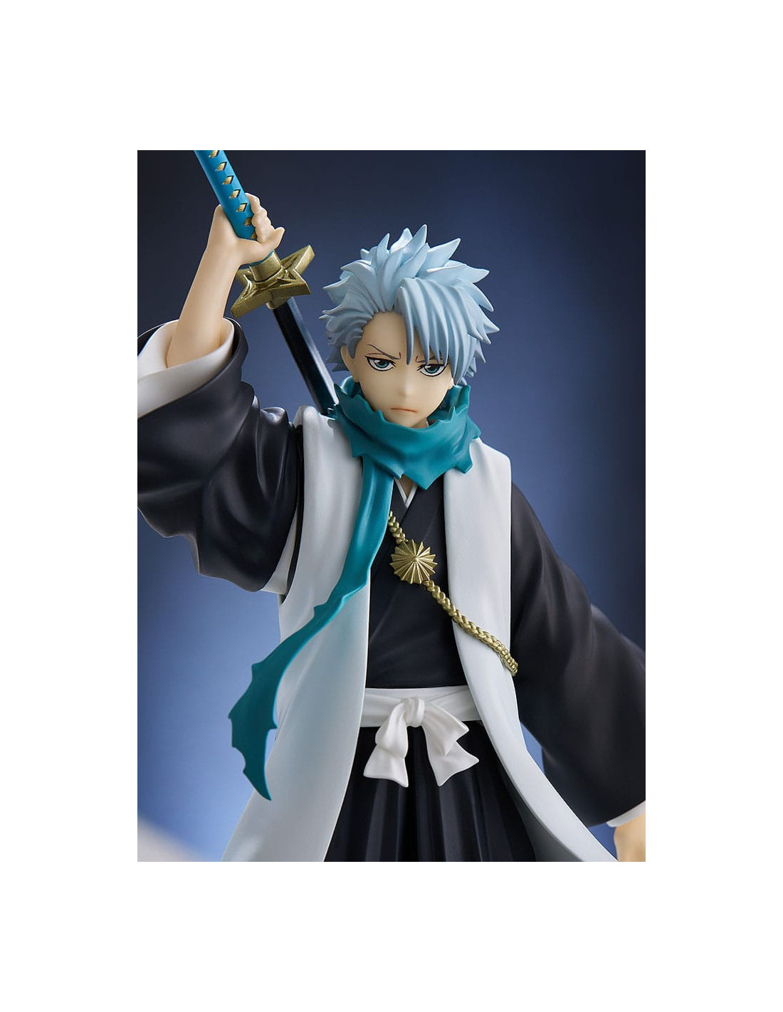 Mesurant environ 17 cm, cette figurine en PVC représente Hitsugaya dans son uniforme de capitaine, katana Hyōrinmaru en main. Sa pose dynamique et son regard déterminé retranscrivent parfaitement l’esprit combatif du personnage. Le niveau de détail est soigné, de la chevelure blanche caractéristique à la fluidité de sa cape, faisant de cette pièce un ajout incontournable à toute collection figurines manga.