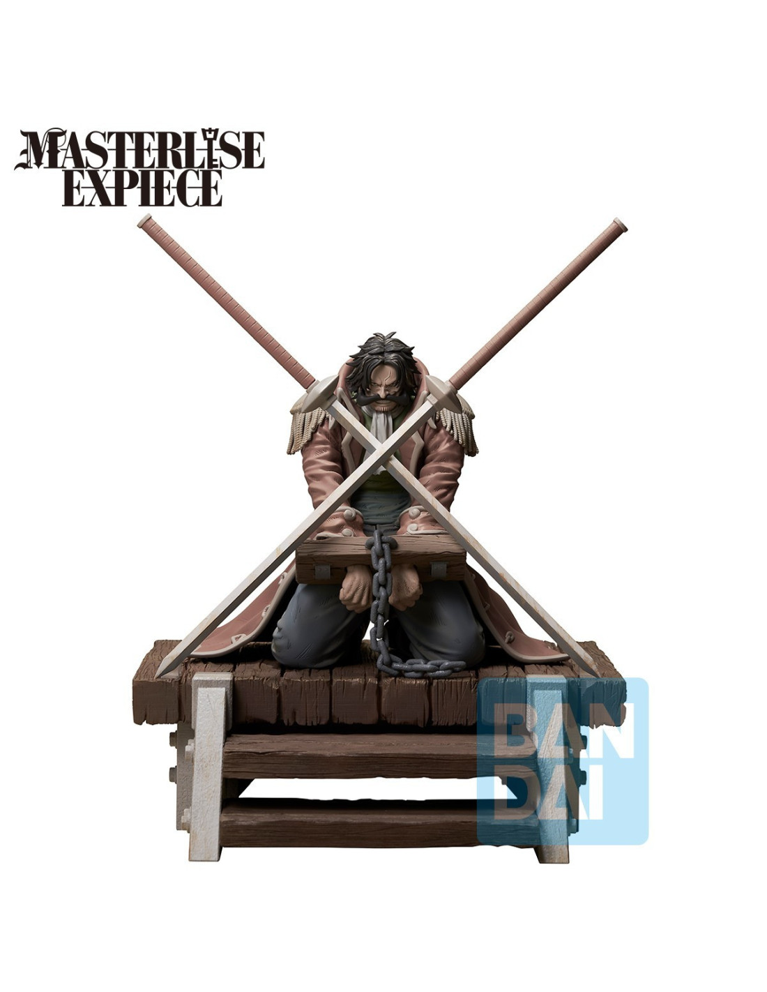 Découvrez la figurine exceptionnelle de Roger, le Roi des Pirates, de la collection Ichibansho ONE PIECE éditée par Banpresto. Cette pièce de collection capture avec précision l'aura imposante de Roger, agenouillé et enchaîné, prêt à affronter son destin. Les détails minutieux de son manteau, ses épaulettes ornées et ses deux sabres croisés derrière lui témoignent de la qualité et du soin apportés à cette figurine.